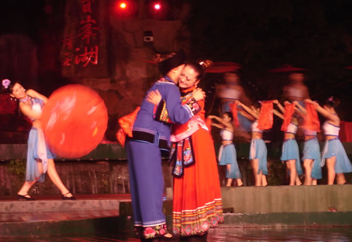 姑娘出嫁,為女人一生中最大的喜事,本應(yīng)充滿幸福、歡樂(lè)的氣氛。然而,舊時(shí)湘西、湘南、鄂西、川西(成都等地)、黔東(銅仁、凱里一帶)諸地,卻流行著一種與之完全相反情調(diào)的古老婚俗——“哭嫁”。也就是在姑娘“出閣”之前,不但新娘本人哭得很傷心,像淚人一般;而且,新娘的母親、姐妹以及姑媽、姨媽、舅媽及其他交往較多的女友,都要陪著新娘哭。湘西土家族哭嫁的風(fēng)俗尤為普遍、濃厚,不但哭嫁的時(shí)間較長(zhǎng)(少則十來(lái)天,多達(dá)個(gè)把月),而且哭嫁歌也保存得古樸、完整。 姑娘出嫁為什么要哭?哪有那么多的東西可哭?這是一種蘊(yùn)含甚為豐厚的人生禮俗,也是一種饒有興趣的婚俗事象。 俗話悅:“人不傷心不落淚!惫媚锍黾拗砸蓿且?yàn)樵谂f式婚姻制度下,女孩(尤其是勞苦大眾家庭的女孩)總是作為犧牲品“拋”(賣)給夫家的,她們的身心受到極大傷害。因此,湘西等地的女孩在出嫁之前要哭泣,要呼號(hào),哭嫁歌就是感情發(fā)泄的最好表現(xiàn)方式。 哭嫁的源起 哭嫁的風(fēng)俗,不知道起源于什么時(shí)候。戰(zhàn)國(guó)時(shí)期,趙國(guó)的公主嫁到燕國(guó)去作王后,她的母親趙太后在臨別時(shí)"持其踵,為之泣,祝曰,必勿使返。"大約就是后來(lái)長(zhǎng)盛不衰的哭嫁風(fēng)俗的濫觴了。 這種風(fēng)俗,直至清末還盛行于四川農(nóng)村中,隨地區(qū)變化而大同小異。解放前,聽老人們說(shuō),早些時(shí)候,沒(méi)有嫁而不哭的人家。如果出現(xiàn)嫁而不哭的姑娘,也會(huì)被鄰里看作沒(méi)有教養(yǎng)的人,傳為笑柄;相傳有出嫁姑娘不哭而遭母親責(zé)打的事,這位母親當(dāng)然算得上是入流導(dǎo)演了。 舊時(shí)宣講故事中,有花轎臨門,父親強(qiáng)令哭《迎風(fēng)罵媒歌》的情節(jié),可知哭嫁是有歌詞的,帶有表演性質(zhì),原是用來(lái)渲染氣氛,以悲襯喜;不過(guò),因?yàn)榛橐鍪前k的,真哭真罵的也不會(huì)少。 抗日戰(zhàn)爭(zhēng)后期,風(fēng)氣較開,哭嫁之風(fēng)已不盛行,而老人們卻還在津津樂(lè)道,哭的方式是,從婚期前一個(gè)月的首日起,入黃昏,姑娘訴哭約一個(gè)小時(shí),其聲嗚嗚。十天以后,她的母親加入"陪哭";又十天以后,她的祖母加入陪哭。這家沒(méi)有諸姑姊妹,人們說(shuō),如果有的話,也應(yīng)當(dāng)加入陪哭行列的。 哭嫁在川西叫"坐堂"。清代吉道人《味蔗軒隨筆·坐堂詞》云:"婚姻之禮,各省風(fēng)俗不同。然酌禮準(zhǔn)情,各省亦大同小異。凡男家娶婦先賦之詩(shī),謂之'催妝';女家親串頌女之詞,謂之'坐堂'。坐堂者,女當(dāng)喜期將近之先數(shù)夕,其諸姑伯姊,置酒為女祖餞,各述吉祥之詞,以為頌美,女則申己之意以答。女左右更有少女,則隨而嫻習(xí)者也。其詞要多鄙俚,然有音韻凄清,風(fēng)格遒勁,如古歌古謠者。羅江明府蔡,微服巡查鄉(xiāng)里,一日行至某處,值有女子歸,諸娣姒咸以諛詞頌女,女申意以答。忽風(fēng)吹句入耳,詞曰:'鳳凰落在桌子上,哪個(gè)女兒肯離娘'。一字一轉(zhuǎn),音韻凄其,誰(shuí)謂天籟之鳴,不在愚夫愚婦耶!"云云。吉道人姓周名際唐,成都人。吉道人記得明明白白,可惜他只記了一句哭嫁詞,難窺全貌。好在舊時(shí)坊間叢刻中有《訓(xùn)女哭嫁》一種,可見(jiàn)一斑。這本小書的目錄有《閨聲哭》、《娘訓(xùn)女》、《嫂哭妹》、《哭爹媽》、《哭哥嫂》、《花轎到屋哭》、《哭叔爺》、《哭兄弟》、《哭外公外婆》、《哭舅爺》、《拜香火哭》等等,編次有點(diǎn)凌亂,似乎隨手所記,未經(jīng)文人之手。遙想《詩(shī)》十五國(guó)風(fēng)未刪之時(shí),大約也不過(guò)如此吧! 閨聲哭 娘聽后園鳥雀驚,要聽房中女兒聲。 我娘當(dāng)門苦葛藤,手攀苦葛訴苦情。 我娘苦情苦過(guò)了,女兒苦情才起根。 ............ 桔子開花葉子青,陽(yáng)雀開聲我開聲。 新打銅盆才裝水,新打剪刀兩面青。 娘不開口我開口,娘不開聲我開聲。 當(dāng)門一根木蓮樹,目連樹上掛卷經(jīng)。 一本經(jīng)書背完了,未見(jiàn)我娘來(lái)開聲。 虧了我娘睡得穩(wěn),爹媽眼淚貴如金。 哭爹媽 月亮彎彎照華堂,女兒開言叫爹娘。 父母養(yǎng)兒空指望,如似南柯夢(mèng)一場(chǎng)。 一尺五寸把兒養(yǎng),移干就濕苦非常。 ............ 勞心費(fèi)力成虛恍,枉自爹娘苦一場(chǎng)。 哭兄弟 黑漆茶盤烏木頭,姐姐離娘弟不留。 留到姐姐吃你飯,留到姐姐穿你衣。 兄弟當(dāng)家掙家忙,嫁了姐姐買地方。 上頭買齊潼川府,下頭買齊遂寧鄉(xiāng)。 ............ 這個(gè)本子所記是川北的歌詞,以前所見(jiàn)的是川南,吉道人所記的是川西,川東,大約也不會(huì)大異的。遺憾的是,該書所記哭嫁詞雖有"只怨媒人莫良心"等語(yǔ),卻沒(méi)有列出"罵媒專目,大約是怕媒人太難堪了吧! 其實(shí),罵媒是哭嫁中必不可少的節(jié)目,也是最具反抗色彩的哭嫁歌詞。舊社會(huì),婦女無(wú)婚姻自由可言,由于"三從四德"的束縛,平時(shí)對(duì)于自己的終身大事幾乎不能置一詞,全由媒人和父母擺布;因此,這登花轎之前的"罵媒",便是難得的發(fā)泄機(jī)會(huì)。這早已反映在戲曲和民間說(shuō)唱等藝術(shù)之中。 以前,川劇《柳蔭記》有《英臺(tái)罵媒》一折,英臺(tái)罵媒人,言詞激烈,聲色俱厲,充分表現(xiàn)了祝英臺(tái)剛烈的性格和反