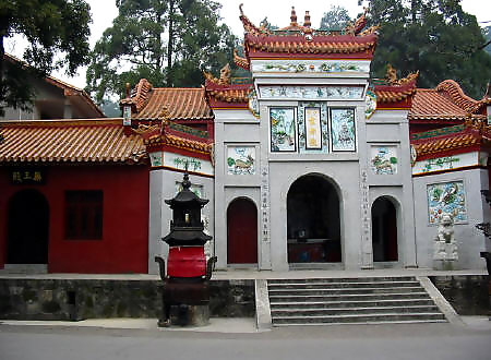 在岳麓山半腰,系晉初古寺,是佛教人湘最早的一所大寺。明神宗時(shí) 更名為萬(wàn)壽寺,民國(guó)初年復(fù)名,古麓山專。唐代大詩(shī)人杜甫曾用“寺門高開(kāi) 洞庭野,殿腳插入赤沙湖”的詩(shī)句稱頌殿字宏大。大雄寶殿等主要建筑,于 1944年被炸毀,僅存山門和觀音閣,現(xiàn)已修整一新.山門上有“古麓出寺” 的橫額,兩旁為“漢魏最初名勝,湖湘第一道場(chǎng)"對(duì)聯(lián),門外古楓參天,濃 蔭覆蓋,門內(nèi)園圃百花爭(zhēng)艷。觀音閣為磚木結(jié)構(gòu),1955年曾加以修葺,1980 年再次修整恢復(fù)原貌,并在廳堂神龕中置觀音像。閻內(nèi)常舉辦小型書畫展 覽。觀音閣前有兩株羅漢松,左邊一株是六朝遺跡,稱“六朝松",樹(shù) 齡在1700年以上, 是岳麓山植物界的"元老", 老干新枝,紛繁翁 郁,彌足珍貴;右邊一株于清代被巨風(fēng)拔去并被清代人補(bǔ)植。兩棵古松 并峙于閣前,游人樹(shù)下經(jīng)過(guò),若入關(guān)隘,故有“關(guān)松"之稱。