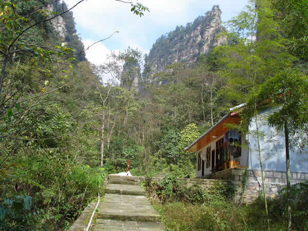 砂刀溝風景圖片 主要景點還有五女拜師、龍宮舞女、雙龜?shù)翘、童子拜觀音、后花園、斜塔等。小天門溝有武陵源第二號鳥的王國。