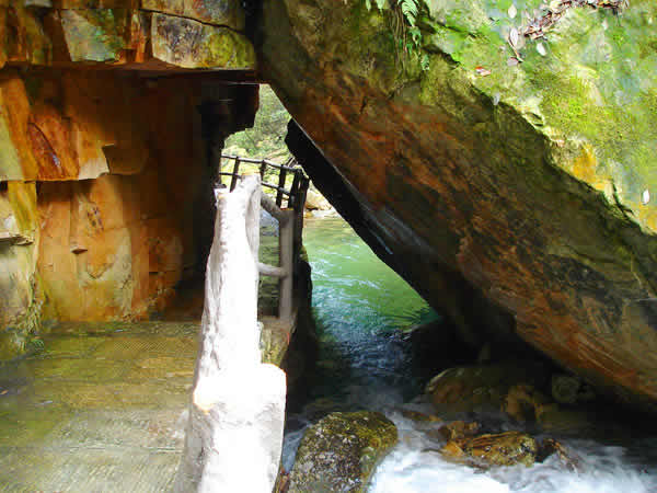 砂刀溝 砂刀溝位于張家界國家森林公園,溝內(nèi)古樹莽藤,怪石滿道,陡峭絕壁交錯擁立,野趣橫生。