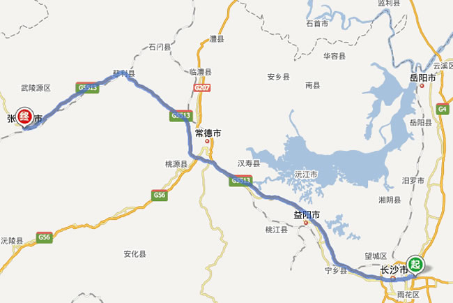 長沙市到張家界自駕車路線圖