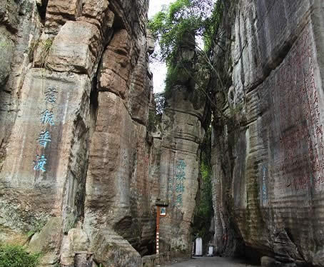 不二門 清嘉慶年間辟有洗心池。“不二門”如斧斫神劈,為石林天成,石林壁上鐫滿歷代文人的詩詠。這里古柏參天,藤蘿倒掛,環(huán)境幽美。有壁石如書的萬卷書者,有嵐霧束腰的七級青石培英塔。凝神盤坐的南海觀音是一塊天然造型的巨石,惟妙惟肖。觀音巖周圍,環(huán)繞著具有明清風(fēng)格的地藏庵、嵩山堂、水府閣等建筑物,布局靈巧緊湊,主題鮮明,因勢造景。景點間曲徑迂回,迷趣深奧,稱八陣圖。景區(qū)內(nèi)的河灘上有兩處溫泉,氤氳縈繞,水溫適宜(41℃),水質(zhì)良好,能治療多種疾病。縣城人民經(jīng)“不二門”前往溫泉就浴者絡(luò)繹不絕,現(xiàn)又增建了石牌坊和民俗博物館。