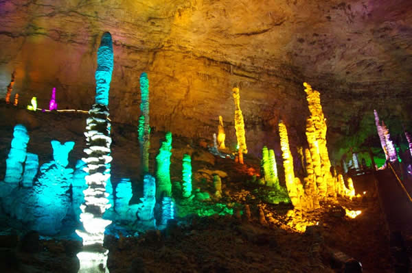 黃龍洞風(fēng)光圖片 世界自然遺產(chǎn)、世界地質(zhì)公園、首批國家5A級旅游區(qū)張家界武陵源的組成部分。2005年被評選為“中國最美的旅游溶洞”。位于湖南省張家界市核心景區(qū)武陵源風(fēng)景名勝區(qū)內(nèi),距離張家界市城區(qū)及張家界荷花機(jī)場、張家界火車站、張家界市中心汽車站36公里,距常張高速陽和出口20公里,有高等級公路張清公路連接張家界市城區(qū)和景區(qū),省道S306直達(dá)景區(qū),屬典型的喀斯特巖溶地貌。1983年,黃龍洞由當(dāng)?shù)?個(gè)青年民兵發(fā)現(xiàn)。1984年10月1日正式向社會開放。自開放至今,已接待中外游客1000萬人次。