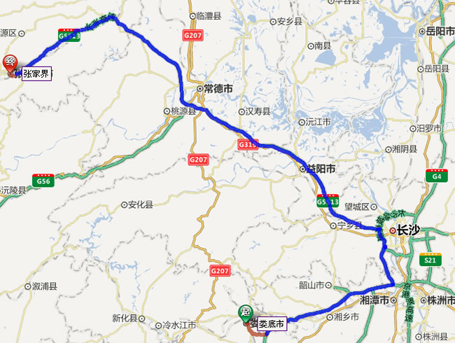婁底市到張家界自駕車路線圖