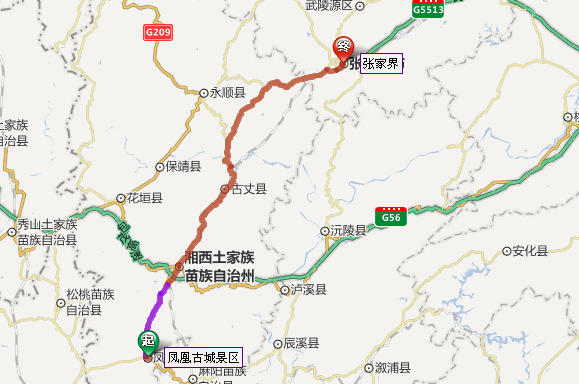鳳凰古城到張家界自駕車(chē)路線圖