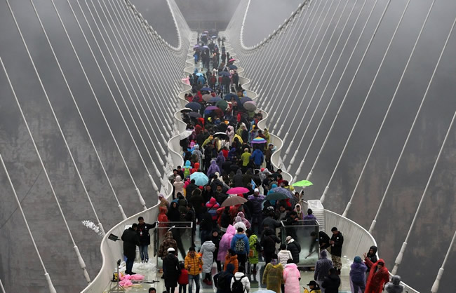 | 張家界大峽谷玻璃橋上演耐寒耐熱大挑戰(zhàn) |