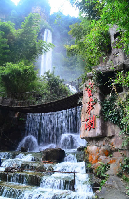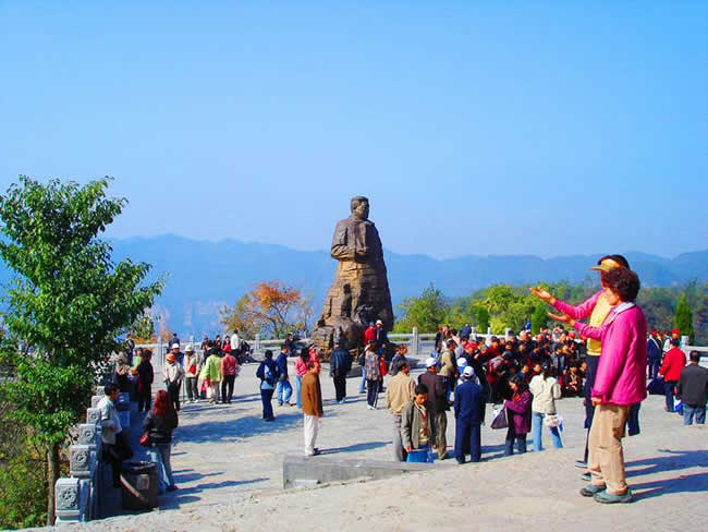 坐落在1200米的千層巖左側(cè)。公園內(nèi),屹立在“云青巖”上的賀龍銅像與大自然連為一體,形成獨(dú)特的藝術(shù)風(fēng)格。這是我國近百年塑造的最大的一尊銅像。神堂灣:神堂灣是一個(gè)神秘的天國,一座綠色的迷宮,至今無人問津。一個(gè)凹形深谷,四面是刀切般的絕壁,終日霧雨霏霏。向下層巒疊嶂,形成五級(jí)神堂,谷底深不可測(cè),被稱作“神秘的天國”。