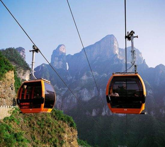 百龍?zhí)焯,垂直高?35米,運(yùn)行高度326米,由154米山體內(nèi)堅(jiān)井和172米貼山鋼結(jié)構(gòu)井架等組成,采用三臺(tái)雙層全暴露觀光電梯并列分體運(yùn)行,每臺(tái)次載客50人次,運(yùn)行速度3米/秒,三臺(tái)同時(shí)運(yùn)行每小時(shí)往返量達(dá)4000人次。百龍?zhí)焯莸男藿▽?shí)現(xiàn)“山上游,山下住”的目標(biāo),提供了交通保障,將袁家界天下第一橋、迷魂臺(tái)、天懸白練以及烏龍寨、楊家界等絕世美景從幕后推向了前臺(tái),并將天子山、袁家界、金鞭溪等精品旅游線路連為一體,解決了多年困擾景區(qū)的交通瓶頸問題。