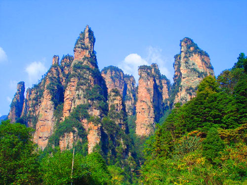下 午:可選擇步行(步行下山一般時(shí)間為2小時(shí)左右)或者乘坐天子山索道(索道票72元/人自行購(gòu)買(mǎi))下山,游覽巧奪天工的--【十里畫(huà)廊】,可以選擇步行或者乘坐觀光小火車游覽十里畫(huà)廊(觀光小火車票單程38元/人自行購(gòu)買(mǎi)),沿途欣賞天臺(tái)三姐妹峰、向王觀書(shū)、黃昏戀、壽星迎賓、采藥老人、錦鼠觀天、猛虎嘯天等景點(diǎn);
