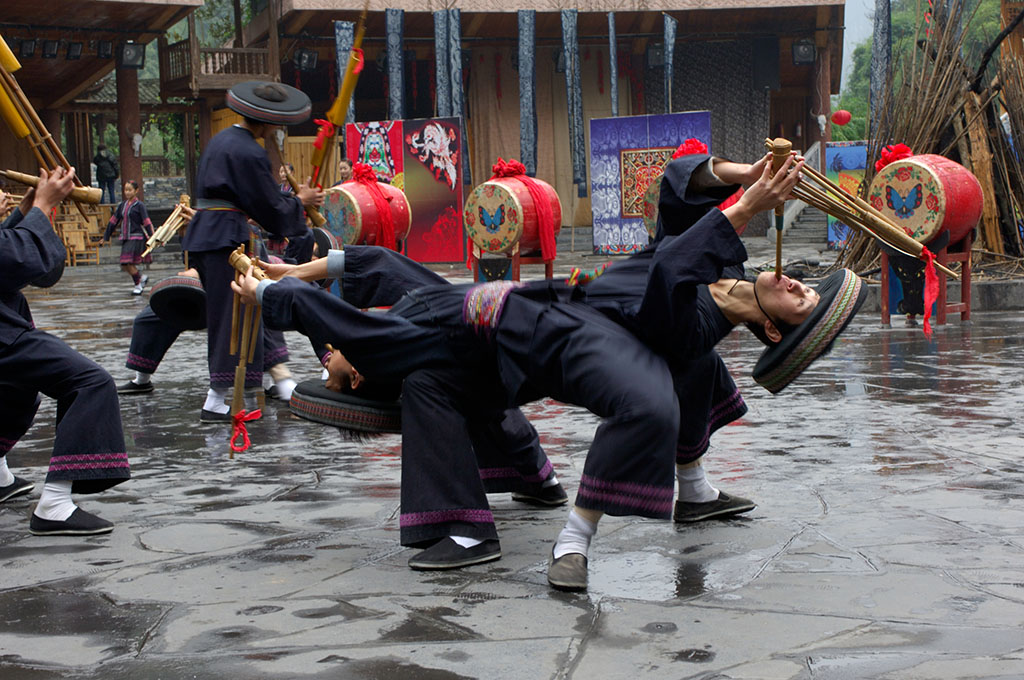 吉首市德夯風(fēng)景區(qū)地處云貴高原邊緣,位于湘西土家族苗族自治州首府吉首市西郊,距吉首市24公里。德夯旅游區(qū)以矮寨為中心,東到堂樂(lè)洞、西到大龍洞,南從武山、蓮臺(tái)山開(kāi)始,北到流紗瀑布(全國(guó)落差最高的流紗瀑布和瀑布群),小龍洞,總面積約190平方公里。自矮寨鎮(zhèn)洞溪上行4公里至德夯苗寨,沿岸筒車(chē)、水輾、古渡、小舟,伴以苗家吊腳樓,一派田園詩(shī)情。九龍溪穿寨而過(guò),四周山色清幽,懸崖如削......在青山綠水間,點(diǎn)綴著一幢幢灰瓦石基吊腳樓,一條條光滑的石板路,一座座精巧的石拱橋,一群群赤足紅裝的浣紗苗女。還有那古老的石碾和筒車(chē),在水力的帶動(dòng)下,咕咕嚕嚕、咿咿呀呀,不知疲倦地旋轉(zhuǎn)著,一派田園詩(shī)情,這就是德夯苗寨。由于這里是純苗區(qū),苗族人民的風(fēng)俗習(xí)慣對(duì)德夯影響很大,苗族人民的四月八、跳鼓舞、三月三歌會(huì)、趕秋、接龍、推牛以及苗嶺情歌,無(wú)不吸引著中外游客。因此,古樸優(yōu)雅的苗族風(fēng)情又成為德夯人為景觀的特色。